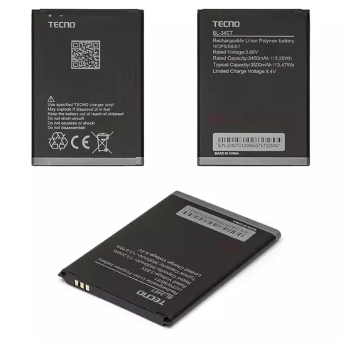 Batería BL-34ET puede usarse con Tecno Pop 3 (BB2), Li-Polymer, 3.85 V, 3500 mAh, Original (PRC)