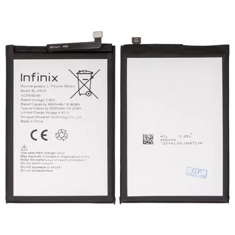 Batería BL-49GX puede usarse con Infinix Hot 11s, Hot 12 Pro (X668C), Note 10 (X693), Note 11i, Note 11S (X698), Note 7 (X690), ZERO X Neo, Li-Polymer, 3.85 V, 5000 mAh, Original (PRC)