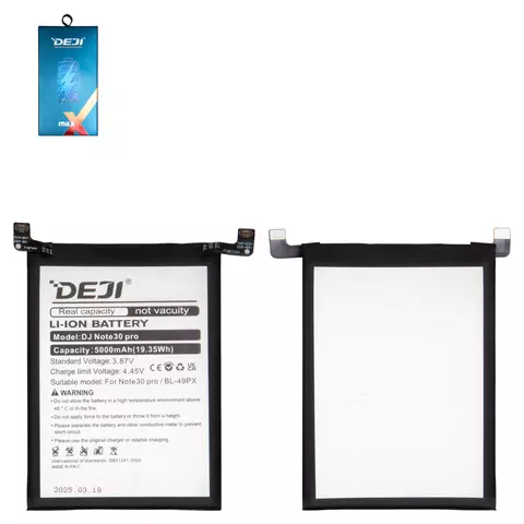 Batería Deji BL-49PX puede usarse con Infinix Note 30 Pro (X678B), Zero 30 4G (X6731B), Li-ion, 3.87 V, 5000 mAh