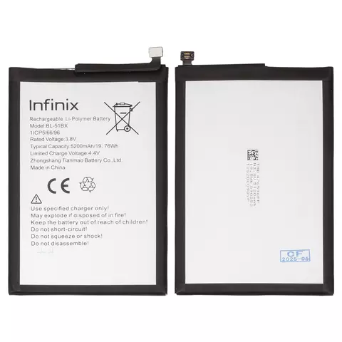 Batería BL-51BX puede usarse con Infinix Hot 10 (X682), Hot 11, Note 8 (X692), Note 8i (X683), Li-Polymer, 3.8 V, 5200 mAh, Original (PRC)