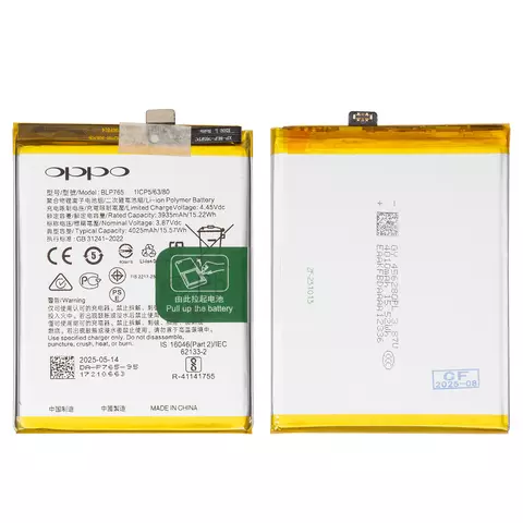 Batería BLP765 puede usarse con Oppo A91, F15, Reno3, Li-Polymer, 3.87 V, 4025 mAh, Original (PRC)