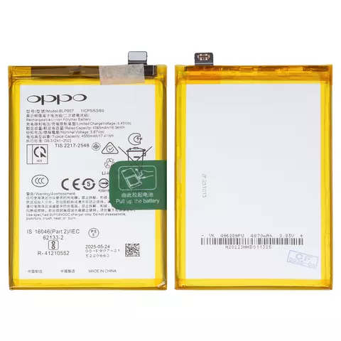 Batería BLP907 puede usarse con Oppo F21 Pro 5G, Reno 7Z 5G, Li-Polymer, 3.87 V, 4500 mAh, Original (PRC)