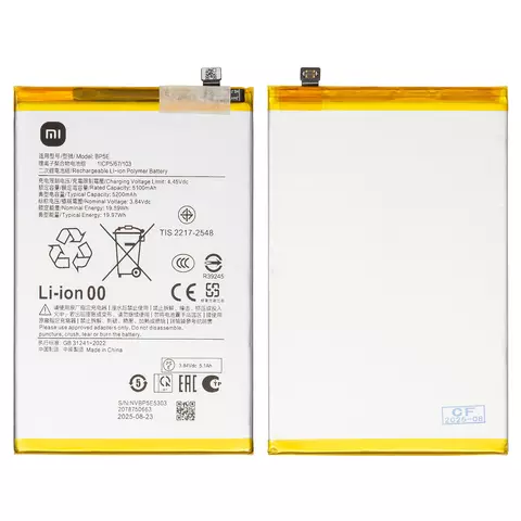 Batería BP5E puede usarse con Xiaomi Poco C71, Redmi A5 4G, Li-ion, 3.84 V, 5200 mAh, Original (PRC)