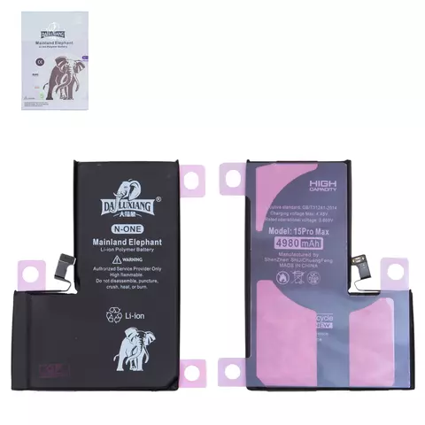 Batería Da Luxiang puede usarse con Apple iPhone 15 Pro Max, Li-ion, 3.869 V, 4980 mAh, mayor capacidad, original IC