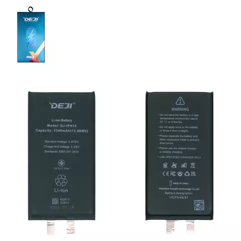Batería Deji puede usarse con Apple iPhone 15, Li-ion, 3.876 V, 3349 mAh, sin controlador