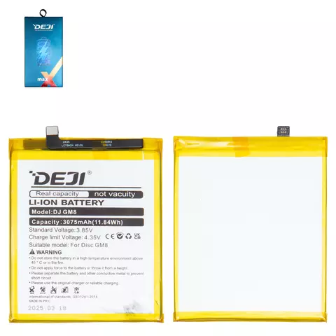 Batería Deji G005 puede usarse con General Mobile GM 8, Li-ion, 3.85 V, 3075 mAh