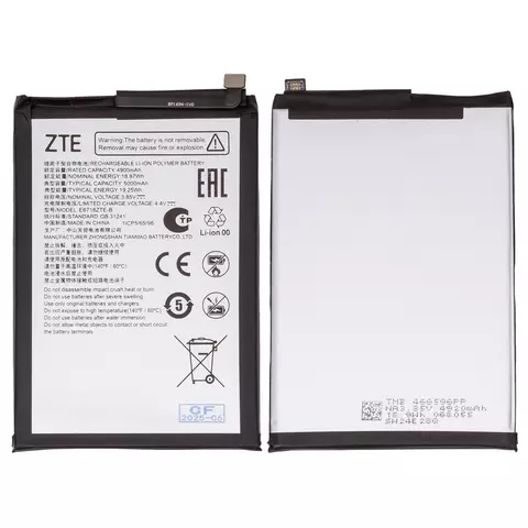 Batería E6718ZTE-B puede usarse con ZTE Blade A35, Blade A55, Li-Polymer, 3.85 V, 5000 mAh, Original (PRC)