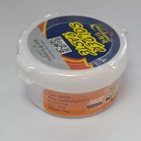 Pasta BGA Mechanic V4S38, Sn 96.5%, sin plomo, Ag 3%, Cu 0.5%, 217 °C, 35 g