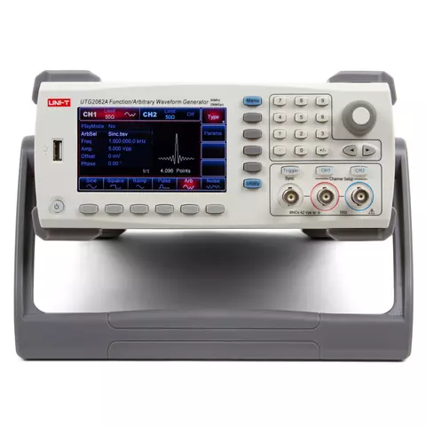 UNI-T UTG2062A es un generador de funciones arbitrarias construido con la tecnología DDS, que garantiza una señal estable, muy precisa y limpia, con distorsiones mínimas. Dos puertos permiten realizar mediciones en dos canales simultáneamente.