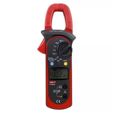 UNI-T UT204A es una pinza amperimetrica diseñada especialmente para mediciones de voltaje AC/DC, corriente AC/DC, resistencia, frecuencia, ciclo de trabajo, chequeo de los diodos y continuidad de los circuitos.