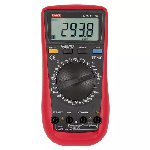 UNI-T UT151G es un multímetro de alta precisión con tamaño de bolsillo – un aparato portátil y cómodo, alimentado por una batería de 9 voltios. Multímetro UNI-T UT151G mide varios parámetros (voltaje, corriente, resistencia, capacitancia, frecuencia), efectúa los test (chequeo de diodos, continuidad de circuitos), tiene funciones de apagado automático, retención de datos.