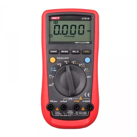 UNI-T UT61A es un multímetro digital con selección automática de rango de mediciones diseñado para el uso profesional y doméstico. Clase de seguridad eléctrica: CAT IV 600V.