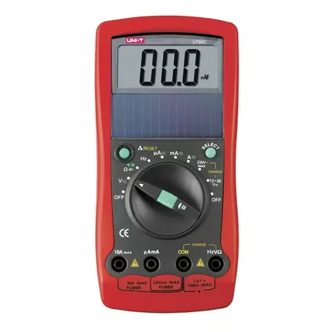 UNI-T UT90C es un multímetro digital que permite medir voltaje AC/DC, corriente AC/DC, resistencia, frecuencia, capacitancia, realizar chequeo de diodos y verificar continuidad de circuitos.