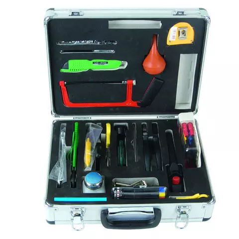 Juego de herramientas profesionales para mantenimiento de redes de fibra óptica. Juego incluye: pelacables, alicates, destornilladores, llaves y otras herramientas y accesorios para fibra óptica. Leer más