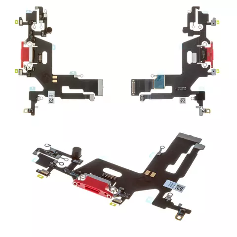 Cable flex puede usarse con Apple iPhone 11, del conector de carga, del conector de auriculares, rojo, con micrófono