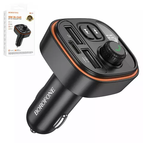 Transmisor FM Borofone BC59, negro, con el botón, USB tipo-A, USB tipo C, #6941991117312