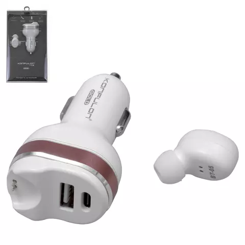 Auricular Konfulon BT-05, inalámbrica, de vacío, blanco, con cargador de coche (salida USB de 5V 4.8A)