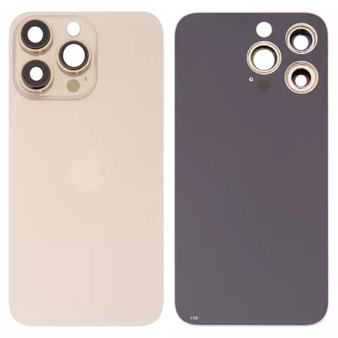 Panel trasero de carcasa puede usarse con iPhone 13 Pro, dorada, con vidrio de cámara, Gold, small hole