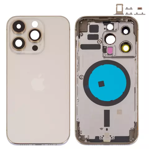 Carcasa puede usarse con iPhone 14 Pro, dorado, con botones laterales, con sujetador de tarjeta SIM, Original (PRC), EU Version, gold