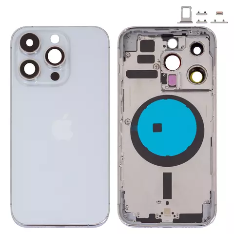 Carcasa puede usarse con iPhone 14 Pro, plateado, con botones laterales, con sujetador de tarjeta SIM, Original (PRC), EU Version, silver