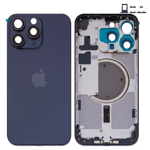Carcasa puede usarse con iPhone 15 Pro Max, azul, con botones laterales, con sujetador de tarjeta SIM, Original (PRC), EU Version, blue titanium