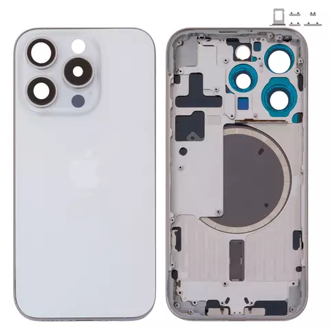 Carcasa puede usarse con iPhone 15 Pro, blanco, con botones laterales, con sujetador de tarjeta SIM, Original (PRC), EU Version, white titanium