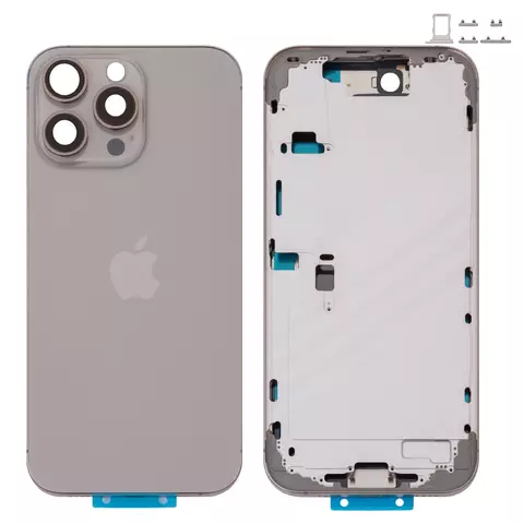 Carcasa puede usarse con iPhone 16 Pro Max, gris, con botones laterales, con sujetador de tarjeta SIM, Original (PRC), EU Version, natural titanium