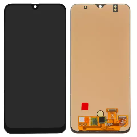 Pantalla LCD puede usarse con Samsung A305 Galaxy A30, A505 Galaxy A50, A507 Galaxy A50s, negro, sin marco, High Copy, con borde ancho, (OLED)