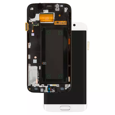 Pantalla LCD puede usarse con Samsung G925F Galaxy S6 EDGE, blanco, con marco, Original, empaque industrial, #GH97-17162B/GH97-17334B/GH97-17334B