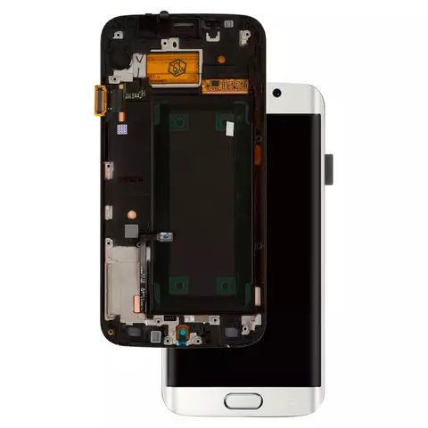 Pantalla LCD puede usarse con Samsung G925F Galaxy S6 EDGE, blanco, con marco, original (vidrio reemplazado)