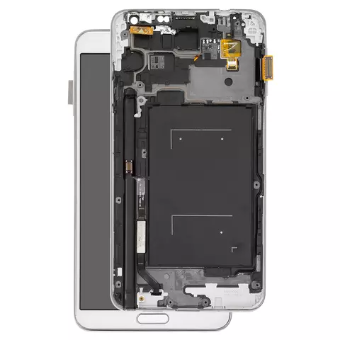 Pantalla LCD puede usarse con Samsung N9005 Note 3, N9006 Note 3, plateado, blanco, con ajuste de brillo, versión LTE, con marco, Copy, (TFT)