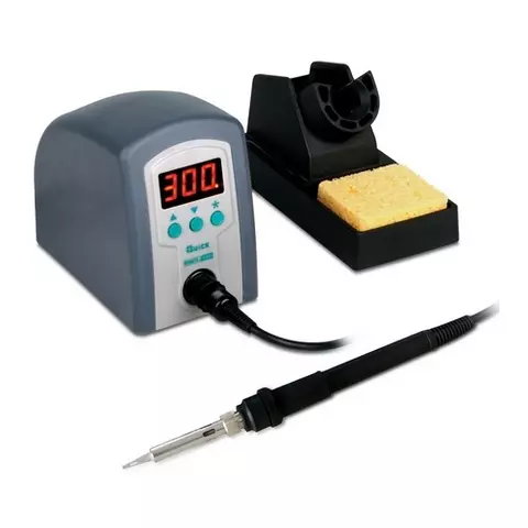 Estación de soldasdura QUICK 3101 ESD se utiliza para operaciones de soldadura en el proceso de montaje y reparación de componentes SMD y equipos electrónicos en general. Viene en una carcasa antiestática y sirve para trabajar con soldaduras sin plomo. Potencia 80 W, diapasón de temperaturas es de 100°C a 450°C, precisión ±2°C. Fabricante - Quick Electronic Equipment Co., Ltd.