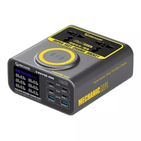 Adaptador de red Mechanic S-Power Pro, 135 W, Wireless Charge, Quick Charge, Power Delivery (PD), con un zócalo, 6 puertos, GaN
