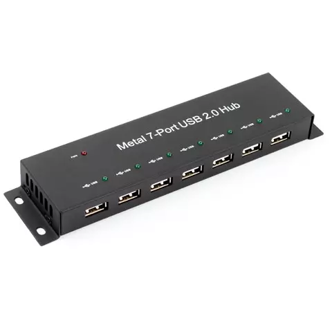 Concentrador (hub) USB 2.0 de 7 puertos en carcasa metálica es una solución ideal para conectar los dispositivos externos, tales como teclado inalámbrico portátil, 3G módem, controlador USB para pantallas táctiles, memoria flash USB, etc. al ordenador de su coche. Carcasa metálica le brinda al concentrador mayor resistencia a los golpes, lo que es muy importante en caso de los aparatos usados en el auto.