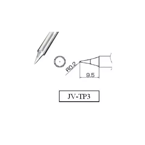 Jovy Systems JV-TP3 es una punta de recambio cónica con sensor de temperatura integrado, diseñada para soldadura sin plomo. Compatible con estación de soldadura Jovy Systems iSolder-40.