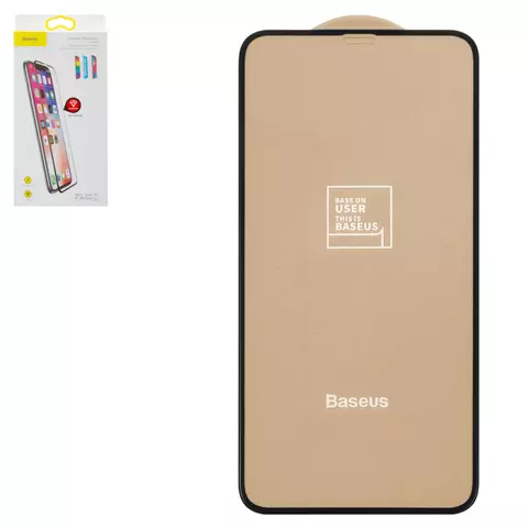 Vidrio de protección templado Baseus puede usarse con Apple iPhone 11 Pro Max, iPhone XS Max, 0.2 mm 9H, Arc-Surface, Anti-Blue Light, 5D Full Glue, negro, #SGAPIPH65-HE01