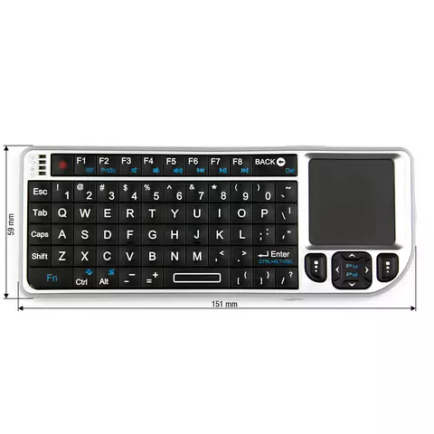 Teclado inalámbrico mini con panel táctil, indicador de laser y batería recargable. Leer más